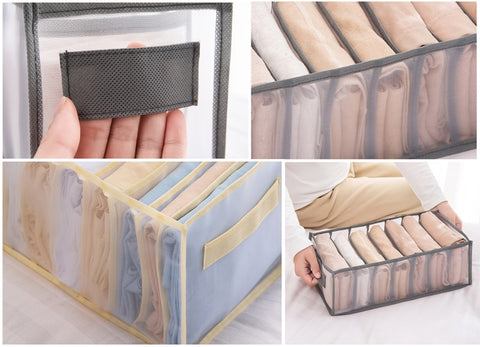 The foldable multi-layer visual grid storage box helps you quickly organize the wardrobe drawers, and classify the clothes.