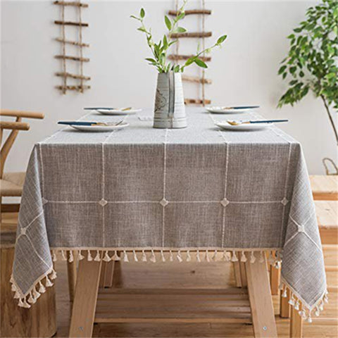 Material and design: Table cloths are made of heavyweight, superior quality linen, and cotton, No fuzzballs &No lint, decent elegant modern design in the middle can be regarded as the table runner, table cloth with tassels decor