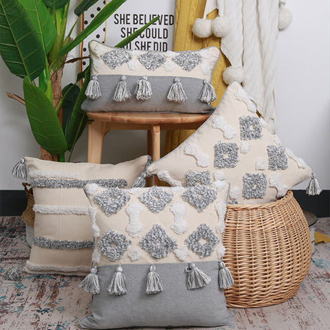 Moroccan Style Cushion Cover Beige Pillowcase Diamond Fringed Square Pillow Cover Home Decoration