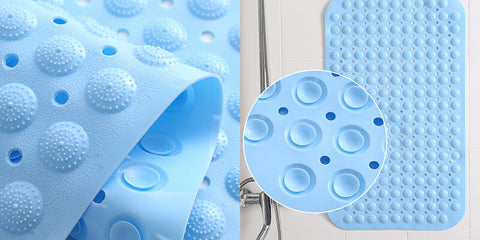- Strong Grip & Non Slip: This bath mat features powerful suction cups that keep mat securely in place. The raised texture pattern on the surface not only provides a massage experience in the shower, but also prevents you from slipping or falling in the bathtub.