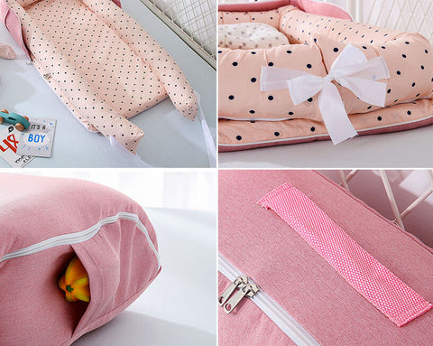 High quality: The baby nest is made of cotton and internal sponge filling, which is soft and skin-friendly, comfortable and breathable. It is safe for the baby's skin and does not fade easily, the inner cushion has good flexibility, is not easy to deform, and is durable. It will let your child sleep peacefully in the cute baby nest.