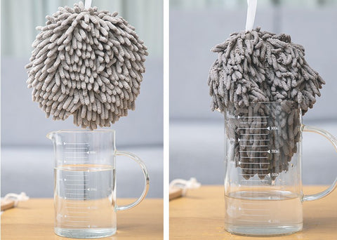 Unique design: Simple and stylish, like a ball, it provides a hand-wiping function while decorating your living space. With a lanyard, it can be easily hung on the wall, easy to store and dry quickly. and can be used on both sides. The cute hand towel is very suitable for children.