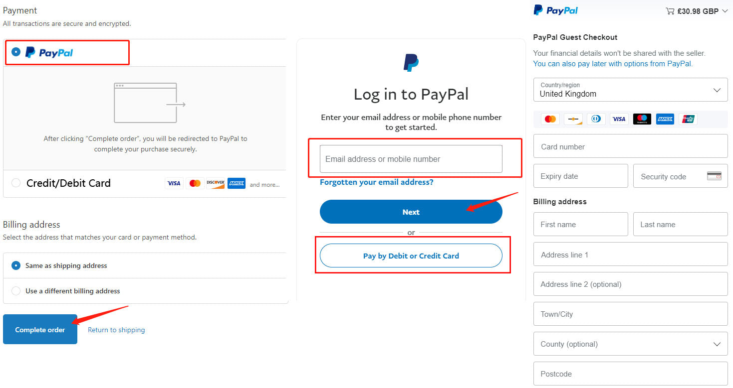- You may still check out even without a PayPal account. To do so, please click on "Pay by Debit/Credit Card" and you’ll be redirected to a secure page where you can enter your credit card information or complete your payment safely via PayPal. Please refer to the following steps for Paypal payment: