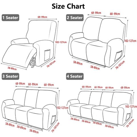 No matter whether it is a 1-seater, 2-seater, 3-seater, or 4-seater, please measure the seat length, seat width, chair back width, and chair back height of a single-seat, as long as the measured values are within the range of the size table, it means The recliner cover fits.