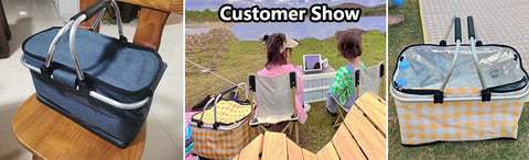 Take the basket to have picnics, go beach traveling, or go fishing with your family and friends. The waterproof insulated bag can load a lot of food and drinks.