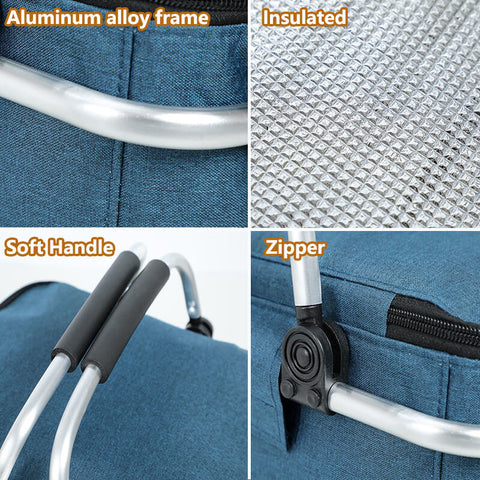 Insulated Cooler Picnic Bag - Portable Collapsible Picnic Basket