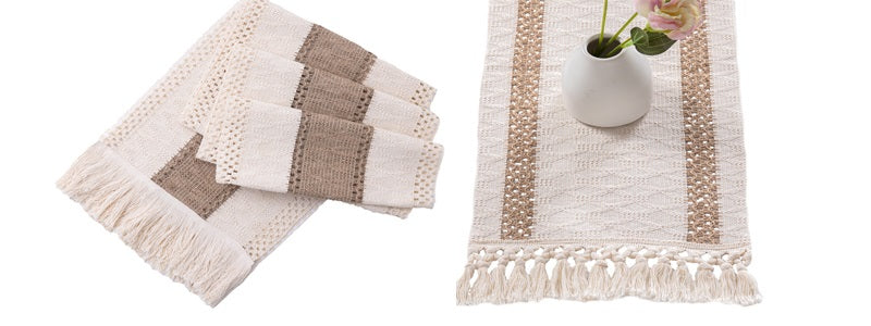 • Warm Tips: There is an extra line at the bottom to fix the tassels to avoid it knotted, please remove the line by yourself when you use the table runner. You can also tie the tassels into different patterns according to your preferences.