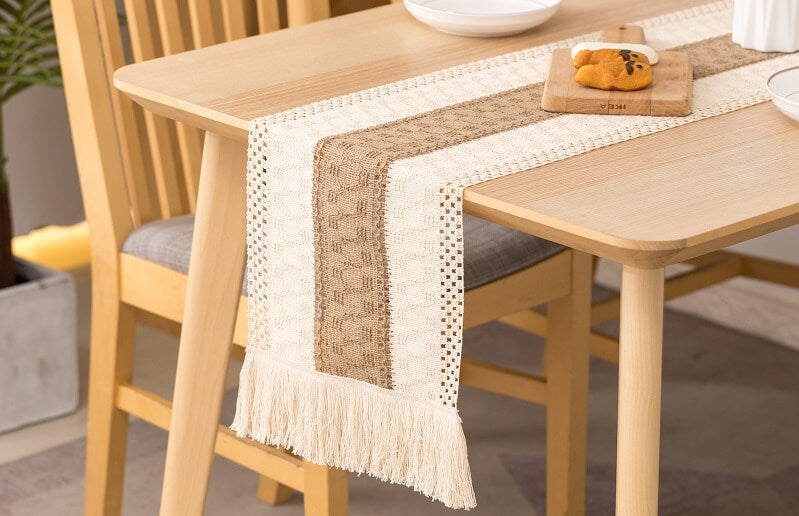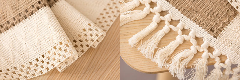 • Unique Design: The burlap table runner features delicate beige and weaved hollow cotton fabric, the tassel design adds classic beauty to the table runner, renew your dining table.