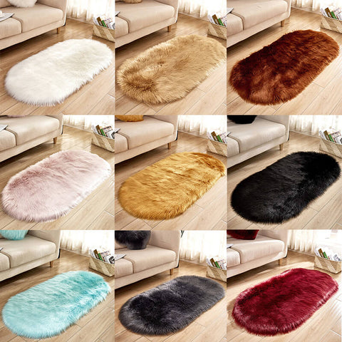 Oval Fluffy Faux Sheepskin Bedroom Rugs