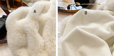 - Material: Side A is made of elastic rabbit fur, which is comfortable and skin-friendly, and has a rich texture. Side B is made of jade fox velvet, which is warm and delicate, and feels smooth. It has a natural luster, does not fade easily, and looks new after washing.
