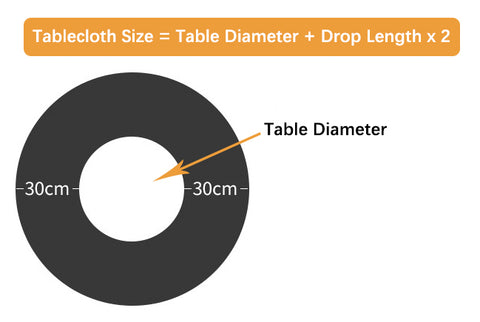 - Tablecloth Diameter = Table Diameter + Drop Length x 2